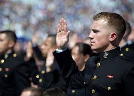 All officers of the seven Uniformed services of the United States take swear or affirm an oath of office upon commissioning. It differs slightly from that of the oath of enlistment that enlisted members recite when they enter the service. It is required by statute, the oath being prescribed by Section 3331, Title 5, United States Code.[1] It is traditional for officers to recite the oath upon promotion but as long as the officer's service is continuous this is not actually required.[2] One notable difference between the officer and enlisted oaths is that the oath taken by officers does not include any provision to obey orders; while enlisted personnel are bound by the Uniform Code of Military Justice to obey lawful orders, officers in the service of the United States are bound by this oath to disobey any order that violates the Constitution of the United States.[3]